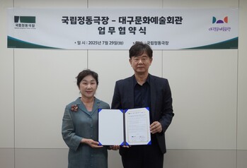 국립정동극장과 대구문화예술진흥원 대구문화예술회관은 문화예술의 활성화와 국민의 문화 향유 기회 확대를 위해 업무협약(MOU)을 체결했다.지난 29일 국립정동극장 대회의실에서 진행된 이번 협약은 양 기관이 보유한 인적·물적 자원을 기반으로 다양한 교류와 협력을 추진해 문화