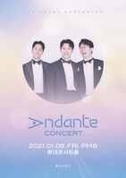베이스 구본수, 바리톤 안동영, 테너 윤서준이 결성한 크로스오버 그룹 안단테가 첫 미니앨범 쇼케이스에 이어 단독 콘서트를 펼친다.안단테의 단독 콘서트는 2021년 1월 8일 오후 8시 롯데콘서트홀에서 개최하며, 오는 26일 티켓 오픈을 진행한다.안단테는 이탈리아어로 '