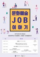 문화체육관광부와 예술경영지원센터(대표 김도일)가 주관하는 '2019 문화예술 JOB이야기'가 오는 25일 오후 1~5시 중앙대학교 안성캠퍼스에서 열린다. 문화예술분야의 취업을 희망하는 청년들이 예술현장에서 활동하는 선배·기업들과 함께 진로탐색과 취업