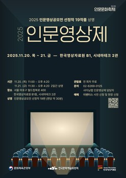 문화체육관광부(문체부)와 한국문화예술위원회(예술위)는 오는 20~21일 한국영상자료원 시네마테크에서 '2025년 인문영상제'를 개최한다.올해 3회차를 맞은 '인문영상제'는 지역의 숨은 인문 자원을 발굴해 영상 콘텐츠로 제작·공유하는 사업이다. 지난 6월 '인문영상콘텐츠