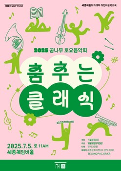 세종문화회관은 7월 5일 오전 11시에 세종체임버홀에서 '2025 꿈나무 토요음악회-춤추는 클래식'을 연다.'꿈나무 토요음악회'는 엄숙한 분위기의 클래식 공연에서 벗어나 특색 있는 테마로 프로그램을 구성한 세종예술아카데미만의 어린이 음악교육 시리즈다. 어린이부터 성인까