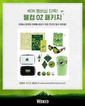 뮤지컬 '위키드' 내한공연이 '웰컴 OZ 패키지'를 출시했다.'웰컴 OZ 패키지'는 13년을 기다린 내한 공연 개막을 앞두고 작품 속 OZ(오즈)에서 완벽한 하루를 보내기 위한 리미티드 에디션이다. 필수 아이템 15종의 한정 굿즈와 VIP 티켓으로 구성됐다.