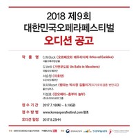 대한민국 오페라를 이끌어갈 새 얼굴을 찾는다.예술의전당(사장 고학찬)과 대한민국오페라페스티벌 조직위원회(위원장 정찬희)는 2018년 '제9회 대한민국오페라페스티벌' 참가작품의 출연 아티스트를 선발하는 오디션을 8월 23일 진행한다. 이번 오디션은 누오바오페라단의 '미호