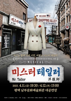 한때 번영했던 평택 미군부대 앞 국제시장 골목에 빛바랜 간판과 낡은 양복점 하나가 남았다. 평택의 과거와 현재를 잇는 창작 뮤지컬 '미스터 테일러'가 오는 4월 11일 오후 7시30분, 12일 오후 3시 평택 남부문화예술회관 대공연장에서 관객들과 만난다.'미스