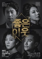 극단 수의 연극 '좋은 이웃'이 오는 7일 티켓을 오픈한다.한국문화예술위원회가 지원하는 '창작산실'의 2016년 연극 우수작품으로 선정된 '좋은 이웃'은 현대사회에서 이웃의 진정한 의미를 심도 있게 다룬다. 이야기는 한적한 어느 시골 농가에 예술가 부부가 이사를 오면서
