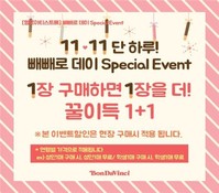 캐주얼 카페 컨버전스아트 전시 '헬로아티스트展'이 11월 11일 빼빼로데이를 맞이해 원플러스원(1+1) 티켓 이벤트를 펼친다.전시기획사 본다빈치에 따르면 빼빼로데이에 전시장을 찾은 관람객을 대상으로 1명이 티켓을 구매하면 초대권 1장을 즉석에서 제공한다.지난 7월 서울