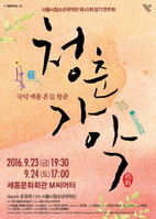 세종문화회관 서울시청소년국악단이 9월 23~24일 '청춘가악'을 무대에 올린다.'청춘가악'은 신진 연주자들의 끼와 재능을 확인할 수 있는 무대로, 젊은 국악연주자들의 창작활동을 지원하고 열린 무대와 다양성을 추구한다.서울시청소년국악단과 함께 협연을 펼칠 연주자들은 공모