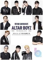8년 만에 돌아온 뮤지컬 '알타보이즈'(ALTAR BOYZ)가 힘찬 첫 걸음을 내디딘다.'알타보이즈'는 각박한 현실을 살고 있는 힘겨운 영혼들을 음악으로 구원하기 위해 뭉친 5인조 보이 그룹의 이야기로, 14일 오후 8시 대학로 유니플렉스 1관에서 개막한다.이 작품은