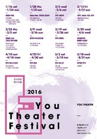 '2016 유시어터 페스티벌'이 상반기 11개의 창작단체와 함께 오는 16일부터 청담동 유시어터에서 개막한다.소극장 공연의 활성화를 위해 시작된 '유시어터 페스티벌'은 실험적이거나 학구적인 새로운 창작을 시도한 단체에게 대관료를 1일 1만원으로 책정, 그 외 대관료를