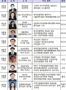 문화체육관광부(이하 문체부)는 9일 여론집중도조사위원회(행정위원회) 제6기 위원 10명을 위촉했다. 임기는 3년이다.새로 위촉된 위원은 △강주안 중앙일보 논설위원 △강현철 호서대 빅데이터AI학부 교수 △안민호 숙명여대 미디어학부 교수 △유수정 KBS 미디어연구소 연구원