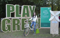 ▲ 윤아가 페스티벌 자전거로 직접 에너지를 만들어 바람개비를 돌리고 있다.가 지난 27일 를 개최했다. 이니스프리가 주관하고 서울시가 후원한 는 그린 라이프를 지향하는 이니스프리 브랜드 철학을 담은 페스티벌로, 이니스프리의 6년째 전속모델인 [윤아]가 페스티벌 뮤즈로