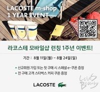 모바일에서 쇼핑하면 다양한 혜택을 받을 수 있다.가 전개하는 가 모바일 숍 론칭 1주년을 맞아 푸짐한 혜택을 증정하는 프로모션을 진행한다.오는 24일까지 라코스테 모바일 숍에서 진행되는 이번 이벤트는 신규 회원 가입 및 모바일 숍에서 제품 첫 구매 시 모바일 숍뿐만 아