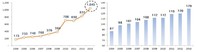▲ 연도별 화장품 수출액(백만 불)과 연도별 수출대상국 수(개)은 최근 10년간 국산 화장품 수출규모가 6배 증가하고 수출대상국도 42개국 확대돼, 올해 1분기 수출실적이 전년 대비 24.8% 증가했다고 발표했다.국산제품의 수출가격은 10년 전에 비해 1.9배 증가,