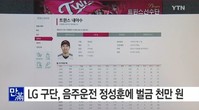 프로야구 LG 정성훈 선수가 뒤늦게 벌금 천만 원 징계를 결정했다. LG 구단은 당시 정 선수가 주민 신고로 경찰에 적발된 아파트 주차장은 도로교통법 대상이 아니기 때문에 면허 정지 등 행정처분을 받지 않았고 구단에도 알리지 않아 조치를 취할 수 없었다고 해명했었다.