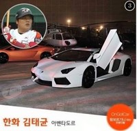 세번쨰로는 야구선수 김태균씨인데요. 이분도 마찬가지로 람보르기니를 타고다닌다는..지드래곤과 똑같은 자동차를 타고 있지요. 정말 대다난것 같습니다.운동으로 그만한 능력을 가졌다는게 정말 대다난 것 같습니당^^