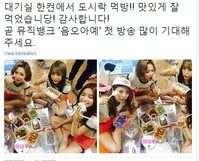 '뮤직뱅크'의 출연진 걸그룹 마마무의 식사 인증 사진이 네티즌들 사이에서 화제가 되고 있다.마마무는 19일 자신들의 공식 트위터를 통해 "대기실 한켠에서 도시락 먹방!! 맛있게 잘 먹었습니당! 감사합니다! 곧 뮤직뱅크 '음오아예' 첫 방송 많이 기대해주세요"라는 글과