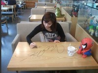 배우 장서희가 화제가 되고 있는 가운데 거대 낙서를 방불케하는 통큰 테이블 사인 사진이 네티즌들의 주목을 끌고 있다.장서희는 지난 2012년 자신의 트위터를 통해 "집 근처 자주가는 카페에서^^"라는 글과 함께 한 장의 사진을 게재했다.공개된 사진 속에서 장서희는 테이