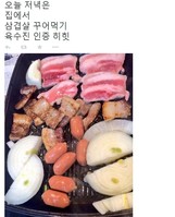 배우 박수진이 배용준과의 결혼 소식으로 화제가 되고 있는 가운데 트위터에 올린 삼겹살 사진이 네티즌들의 주목을 받고 있다.박수진은 지난해 1월 자신의 트위터에 “오늘 저녁은 집에서 삼겹살 꾸어먹기 육수진 인증 히힛”이라는 글과 함께 한 장의 사진을 게재했다.사진 속에서