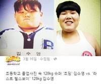 '라스트 헬스보이'에서 다이어트에 성공한 김수영의 초등학교 졸업사진이 다시 화제가 되고 있다.김수영은 24일 KBS 2TV 예능프로그램 '개그콘서트' 코너 '라스트 헬스보이'에서 약 70Kg 감량에 성공, 인간 승리를 보여준 바 있다.이에 과거 페이스북에 올렸던 초등학