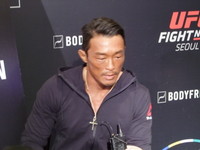 추성훈이 딸 사랑이에게 멋진 아빠의 모습을 보여주고 싶어 은퇴를 미뤘다고 고백했다.26일 인터컨티넨탈 서울 코엑스에서 열린 'UFC 파이트 나이트 서울 대회(UFC FIGHT NIGHT SEOUL)' 미디어 데이에서 추성훈은 딸 사랑이가 한국에 온 것에 대해 "나이