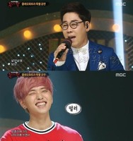 '복면가왕'에서 '거북이와 두루미'와 '웃는 얼굴에 수박씨'가 1라운드 대결에 나섰다.26일 방송된 MBC 예능프로그램 '복면가왕'에서 '거북이'는 '수박씨'와 김장훈의 '나와 같다면'을 열창하며 듀엣 무대를 펼쳤다.이때 거북이는 남성미 넘치는 박력 보이스로 노래를 시