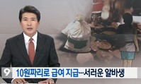 한 학생이 10원짜리 동전으로 임금을 받은 사실을 공개하면서 대중의 분노가 하늘을 치솟고 있다.지난달 30일 방송된 KBS 1TV 뉴스9에서는 임금체불로 고용노동부에 진정을 냈다가 임금의 일부를 10원짜리 동전으로 받은 아르바이트생의 사연이 보도됐다.보도에 따르면 19