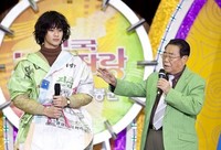 드라마 '프로듀사' 김수현이 과거 송해에게 꾸지람을 들은 사실이 재조명 되고 있다.지난 2011년 송해는 KBS2 드라마 '드림하이'에 카메오로 등장했다. 김수현이 엄마에게 안마기를 선물하기 위해 '전국 노래자랑' 무대에 서는 장면에서 송해가 MC로 등장해 재치있는