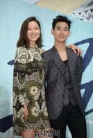'공효진과 김수현' "아 정말 잘 어울리네"11일 오후 서울 강남구 역삼동 더 라움에서 KBS 2TV 금토 예능 드라마 '프로듀사' 제작발표회가 열렸다. 차태현(왼쪽부터), 공효진, 아이유, 김수현이 포즈를 취하고 있다. '프로듀사'는 KBS 예능국이 그동안의