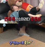 개그우먼 이국주가 8일 오후 방송된 MBC 예능프로그램 '나 혼자 산다'에서 새해맞이 대청소를 했다.이날 방송에서 대청소를 준비하던 이국주는 잔꾀를 하나 내놓았다. 이국주는 집안에 굴러다니던 실내화에 양면테이프를 붙여 걸어다니며 먼지를 잡을 궁리를 한 것.하지만 완성된