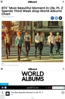 방탄소년단이 미국 빌보드의 월드 앨범 차트에서 세 번째 1위를 차지했다.미국 빌보드는 13일(현지시간) K-POP 칼럼 코너 K-TOWN을 통해 “방탄소년단의 ‘화양연화 pt.2’가 월드 앨범 차트에서 세 번째 정상주를 보내다”라는 제목의 기사를 게재했다. 빌보드는 “