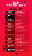 그룹 아이콘이 데뷔 풀앨범 ‘iKON DEBUT FULL ALBUM [WELCOME BACK]’ 트랙리스트를 공개했다.아이콘의 소속사 YG엔터테인먼트는 22일 공식블로그를 통해 ‘iKON – DEBUT FULL ALBUM ‘WELCOME BACK’ TRACKLIST’라