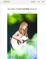 가수 주니엘이 중국 매체로부터 관심을 받고 있다.주니엘의 두 번째 디지털 싱글 앨범 ‘쏘리(Sorry)' 컴백 소식이 전해지자 중국 음악전문 매체 인위에타이는 물론, 중국 포털사이트 소후, 텐센트, 시나웨이보에서 관련 기사를 연이어 보도하며 관심을 드러냈다.인위에타이는