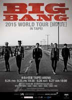그룹 빅뱅이 월드투어 대만 추가 공연을 확정했다.빅뱅의 소속사 YG엔터테인먼트 측은 20일 공식 페이스북을 통해 “빅뱅이 오는 9월 25일부터 27일까지 대만 타이페이 아레나에서 월드투어 공연을 진행하는 가운데 팬들의 성원에 힘입어 24일까지 추가 공연을 확정 짓고 현
