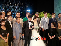 트로트 가수 박현빈의 결혼식이 8일 오전 서울 광진구 광장동 W서울워커힐호텔 비스타홀에서 열렸다.이날 박현빈은 하객으로 온 허각, 송해, 남진, 김창렬, 인순이 등과 함께 포토타임을 가지고 있다.박현빈의 예비신부는 한국무용을 전공한 4세 연하로 박현빈과 5년간 비밀연애