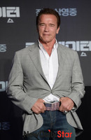 영화 '터미네이터 제니시스'의 주연 아놀드 슈왈제네거와 에밀리아 클라크 내한 기자회견이 2일 오전 서울 강남구 리츠칼튼서울 그랜드볼룸에서 열렸다.이날 기자회견에 참석한 아놀드 슈왈제네거가 취재 기자들을 향해 포즈를 취하고 있다.한편 슈왈제네거는 지난 2013년 ‘라스트