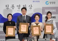 • [포토] '청룡영화상' 핸드프린팅 들어보이는 2014년 수상자들