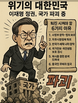 이재명 정권, 국가 파괴 중 ... 퇴진시켜야 할 6가지 이유