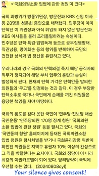 <국회를 보면, [이게 나라냐?]는 말이 절로 나온다>지난 30일 ‘EBS법 개정안’을 끝으로 민주당이 밀어붙인 <방송 4법>이 국회에서 모두 가결됐다.민노총 은 곧바로, 《방송법 국회통과 필연, 윤 거부권 땐 반드시 끌어내린다》는 성명서
