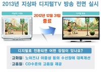 방송통신분야 새해부터 달라지는 것 13가지방송통신위원회는 방송통신분야에서 새 해 부터 달라지는 주요 사항에 13가지에 대해 밝혔다.① 지상파 디지털TV 방송 전면 실시2013년 1월부터 지상파 디지털방송을 전면적으로 실시한다. 2012년 12월 31일 지상파 아날로그T