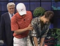 미국의 유명 토크쇼 '제이 레노(Jay leno)쇼'에 출연한 한국계 골프스타 앤소니 김(24·한국명 김하진)이 할리우드 배우 제시카 알바에게 야릇한 포즈로 골프 교습을 한 장면이 공개돼 화제선상에 올랐다.한국시각으로 지난 1일 밤 미국 NBC 방송 '제이