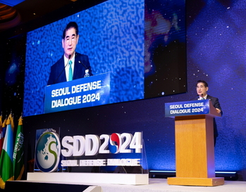 "북핵이 계속 고도화되고 국제사회에 변화가 생겨서 북핵 위협으로부터 우리 국민과 지역의 안전을 지키기에 제한된다고 판단된다면 그때는 다양한 모든 방법을 열어놓고 검토할 것이다."김용현 국방부 장관이 11일 롯데호텔 서울에서 국방부가 개최한 제13회 서울안보대화(SDD)