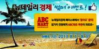 [뉴데일리경제 '썸머' 이벤트] * 마감되었습니다 뉴데일리경제 페이스북에서 '좋아요' 클릭!참가자 전원에게 ABC마트 쿠폰이 와르르~1. 응모방법 : 뉴데일리경제 페이스북 페이지에서 ...'좋아요'를 누르고 '댓글'을 작성하면 응모완료.2. 이벤트 기간 : 2013년