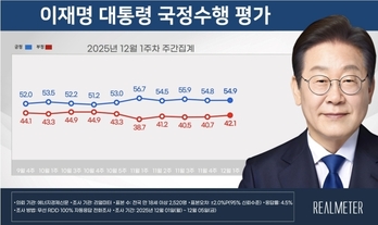 李 대통령 국정 지지율 54.9% … 민주 44.2% vs 국힘 37.0%