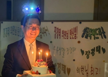 장경태, 생일 케이크 들고 웃으며 "'사람 가려 만나라' 꼰대 얘기인 줄 알았다"