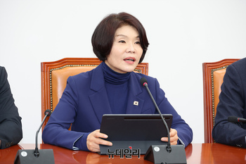 한정애 더불어민주당 정책위의장이 26일 오전 국회에서 열린 정책조정회의에서 모두발언을 하고 있다.