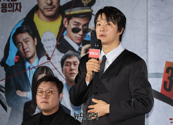 박철환 감독이 9일 오전 서울 CGV용산아이파크몰에서 열린 영화 '끝장수사(각본 감독 박철환)' 제작보고회에서 인사말을 하고 있다. '끝장수사'는 촌구석으로 좌천된 형사 ‘재혁(배성우)’에게 찾아온 인생 마지막 기회! 두 명의 용의자가 얽힌 살인사건의 진범을