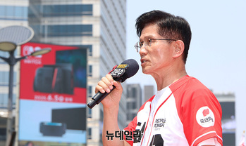 김문수 국민의힘 대선 후보가 공식 선거운동 마지막 주말인 1일 오전 서울 강남구 코엑스 앞에서 열린 유세현장에서 지지를 호소하고 있다. 김 후보는 이날 수도권을 돌며 마지막 표심 잡기에 나선다.