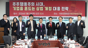 '주주행동주의시대, 기업을 흔드는 상법 개정 대응 전략 토론회'가 5일 오전 국회 의원회관에서 자유기업원 한국기업법연구소가 주최로 열린 가운데 참석자들이 기념촬영을 하고 있다.