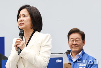 허은아 전 개혁신당 대표가 19일 이재명 더불어민주당 대선후보에 대한 지지를 호소했다.허 전 대표는 이날 서울 영등포구 타임스퀘어 광장에서 열린 이 후보의 유세 현장에 나타나 "영등포 청과시장의 맏딸이자 전 개혁신당의 대표 허은아"라고 소개한 뒤 "저는 오늘 이 자리에