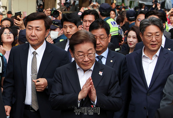 이재명 더불어민주당 대선후보가 5·18 광주 민주화운동 기념일을 하루 앞두고 광주를 찾아 '광주 정신'을 강조하며 텃밭 다지기에 나섰다. 이 후보는 17일 이 후보는 전남 나주 금성관길에서 첫 유세에 나섰다. 이 후보는 양곡관리법 재추진을 약속했다.그는 "(윤